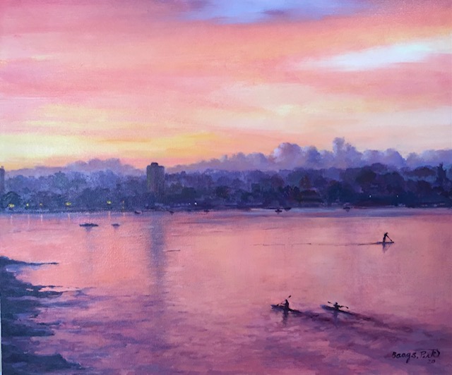 People were jogging, doing yoga, kayaking and swimming and also the skyscape was dramatically changing in colour and shape opening up for a brand new day.