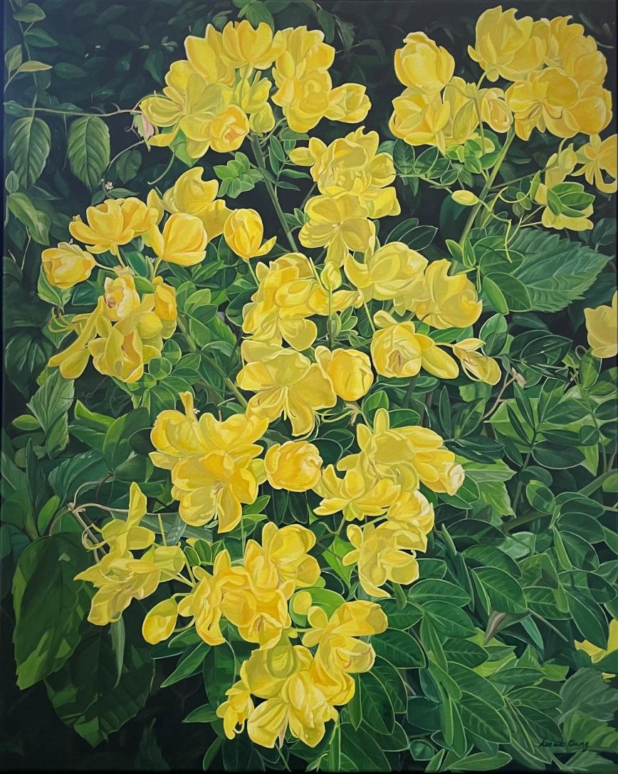 Yellow can bring to one’s mind happiness, warmth or hope. To me, it also represents vitality and I have portrayed it through this wild flower tree that blooms and falls only using its own strength. During this period where people are feeling down and fatigued, I hope my painting can resonate coziness and comfort.